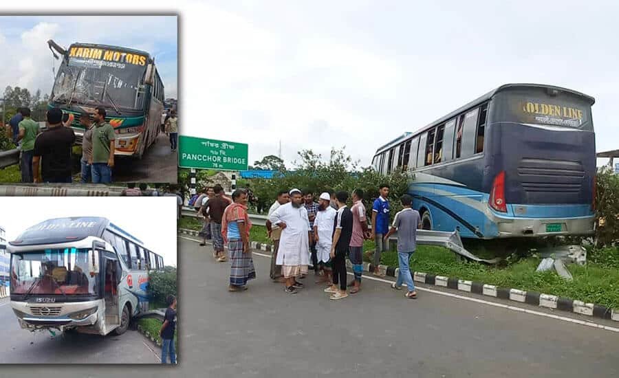 হাইওয়ে পুলিশ জানায়, সকালে গোল্ডেন লাইন পরিবহনের যাত্রীবাহী একটি বাস ফরিদপুর থেকে রাজধানী ঢাকার উদ্দেশে ছেড়ে আসে। পথিমধ্যে ঢাকা-ভাঙ্গা এক্সপ্রেসওয়ের পাঁচ্চরে আসলে নিয়ন্ত্রণ হারিয়ে বাসটি সড়কের ডিভাইডারে উপরে উঠে যায়। একই সময় বাসিটি অন্তত ২০ হাত দূরে টুঙ্গিপাড়া এক্সপ্রেসের আরেকটি বাস নিয়ন্ত্রণ হারিয়ে সড়ক ডিভাইডারের উপরে উঠে যায়। এর কিছুটা পেছনে নড়াইল এক্সপ্রেসের একটি বাস রাস্তার পাশে ডিভাইডারে ধাক্কা লাগে। এ অবস্থায় সাকুরা পরিবহনের একটি বাস নড়াইল এক্সপ্রেসের বাসটির পেছনে ধাক্কা দেয়। চারটি বাস দুর্ঘটনায় অন্তত ২৫ জন আহত হন। খবর পেয়ে ঘটনাস্থলে গিয়ে আহতদের উদ্ধার করে বিভিন্ন হাসপাতালে ভর্তি করে ফায়ার সার্ভিস ও হাইওয়ে পুলিশ। চারটি বাসের সংঘর্ষের পর এক্সপ্রেসওয়ের ঢাকামুখী লেনে যান চলাচল বন্ধ হয়ে যায়। প্রায় এক ঘণ্টা চেষ্টা চালানোর পর যান চলাচল স্বাভাবিক করে হাইওয়ে পুলিশ।