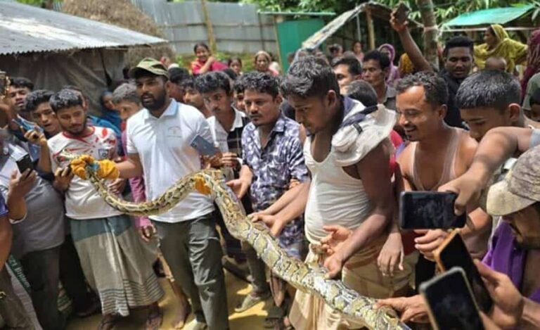 কক্সবাজারে বাড়ির আমগাছে মিললো ১০ ফুটের বার্মিজ অজগর