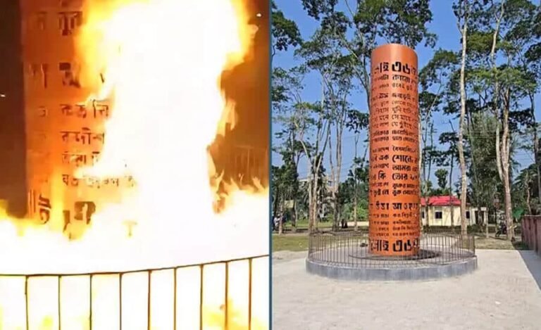 পেট্রোল বোমার আগুনে পুড়লো জুলাই শহীদ স্মৃতিস্তম্ভ