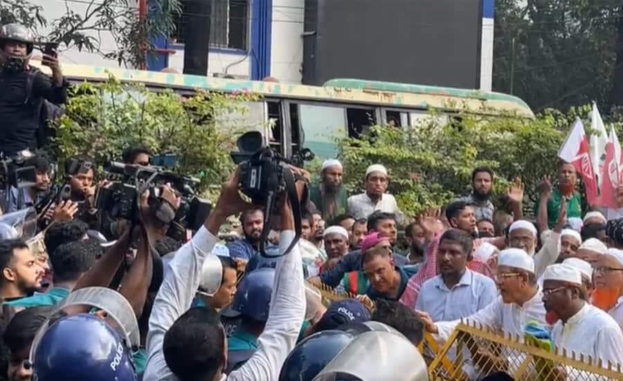 গণমিছিলে পুলিশের বাধা, যমুনায় যাচ্ছে ৮ দলের প্রতিনিধিদল